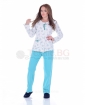 Дамска пижама с дълъг ръкав изработена от мека памучна материя интерлог. Блуза цяло закопчаване с копчета, кокетно малко джобче с декорация. Панталон едноцветен с удобна кройка.