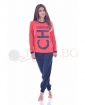 Блуза в четири различни цвята със ситопечат, щрих на деколтето и ръкавите. Панталон тъмен едноцветен отново с щрих.